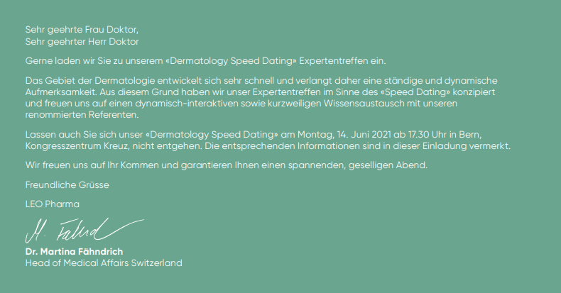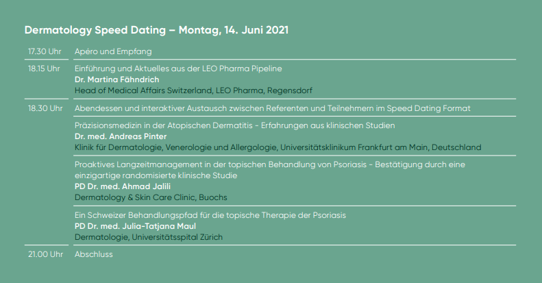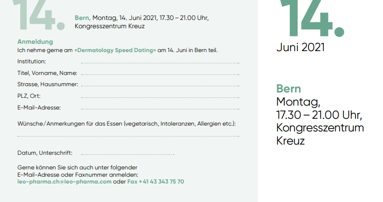 DERMATOLOGY SPEED DATING - 14. Juni 2021 - Bern