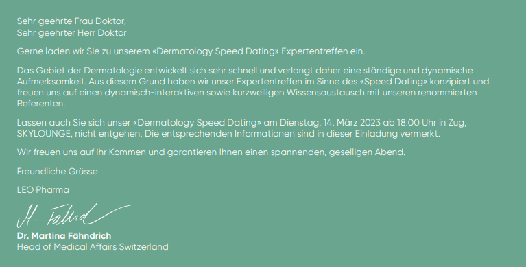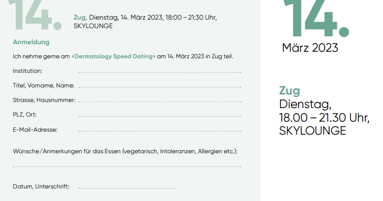 DERMATOLOGY SPEED DATING -14. März 2023 - Zug