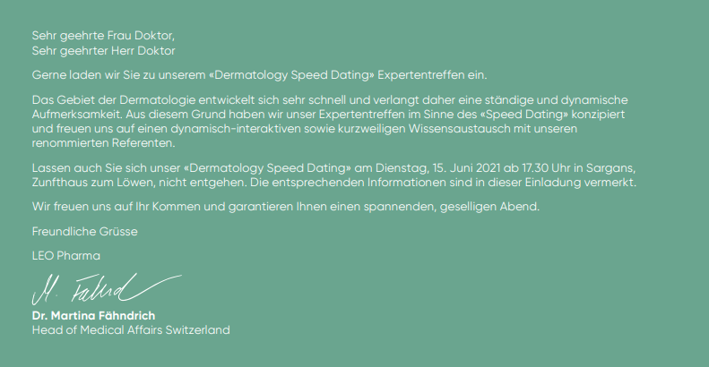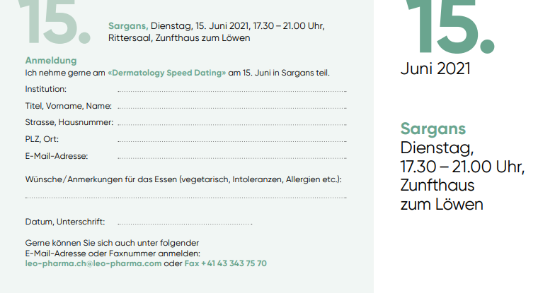 DERMATOLOGY SPEED DATING - 15. Juni 2021 - Sargans