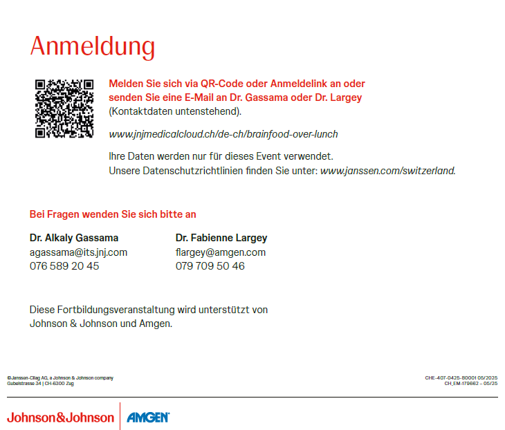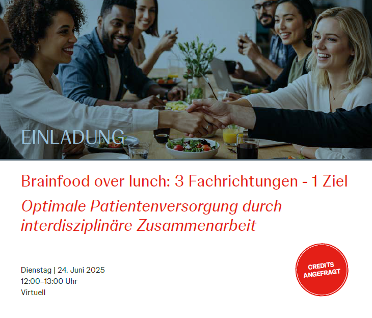 Veranstaltungen 23.05.2025 EINLADUNG BRAINFOOD OVER LUNCH: 3 Fachrichtungen - 1 Ziel Optimale Patientenversorgung durch interdisziplinäre Zusammenarbeit - 24. Juni 2025, virtuell