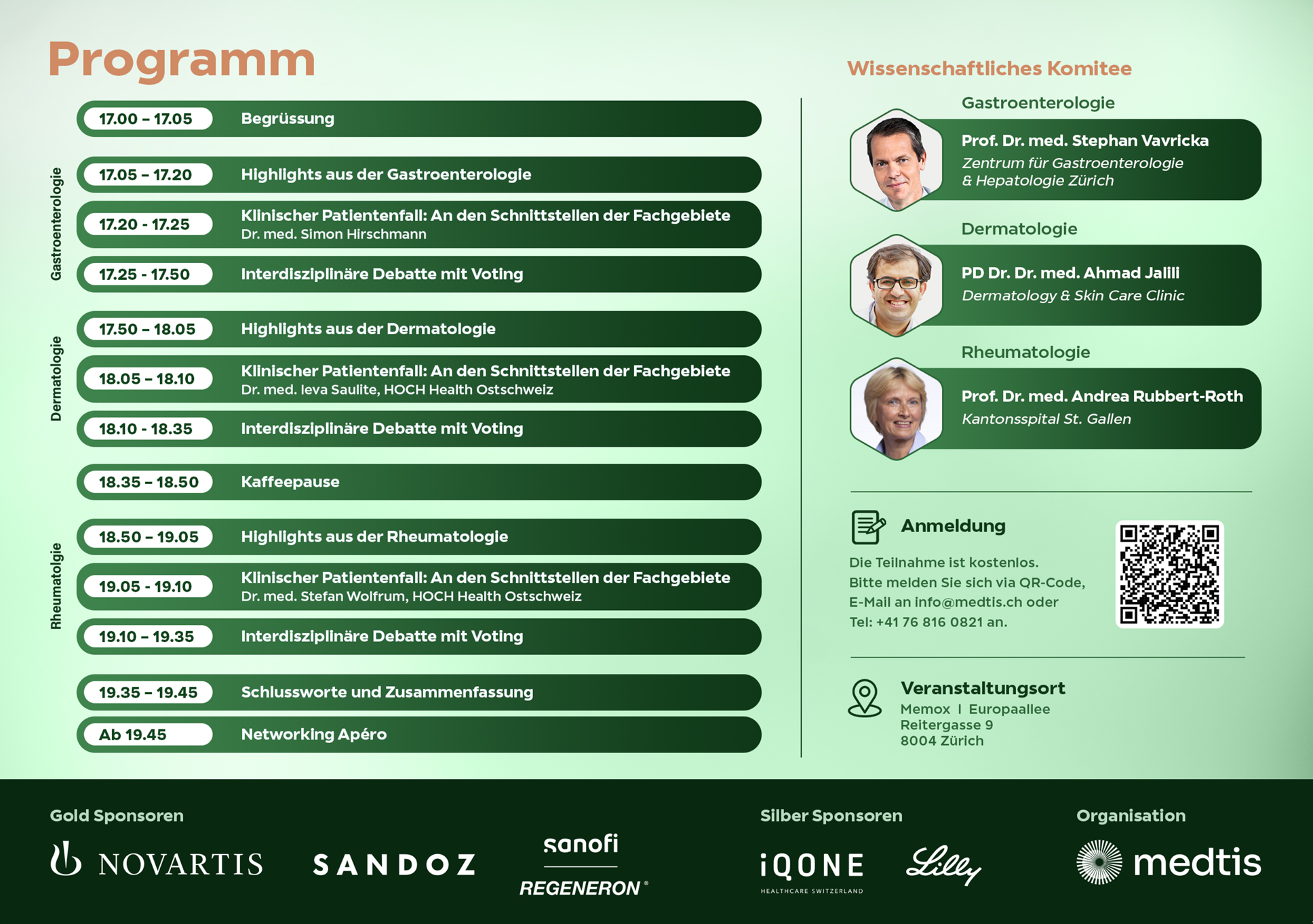 ZWISCHEN KONSENS & KONTROVERSE - Interdisziplinäre Ansätze in der Dermatologie, Rheumatologie und Gastroenterologie - 22. Mai 2025, Memox, Zürich